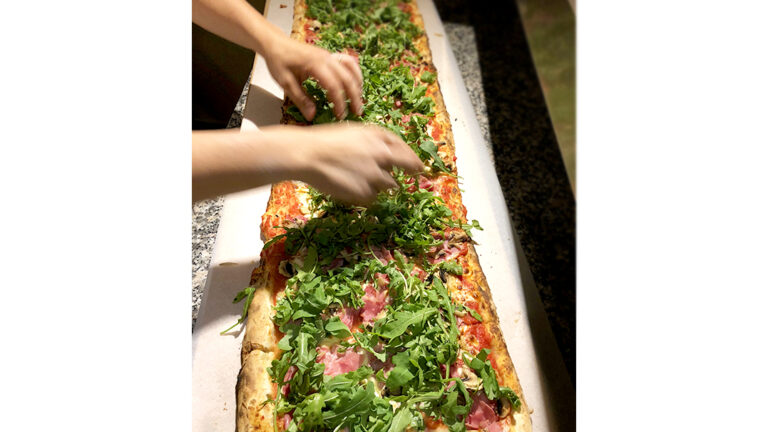 „Das Mehl mahlt eine Tessiner Mühle, gebacken wird im Holzofen, das Teigrezept ist geheim – kein Wunder, dass die Pizza hier einmalig schmeckt. Für 25 Franken gibts mittags ein Menü inklusive Getränk und Kaffee.“